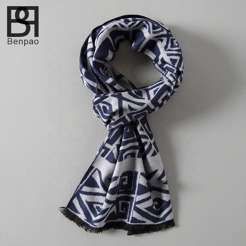 100% 진짜 양모 남자 스카프 자카드 패션 긴 chunky 스카프 겨울